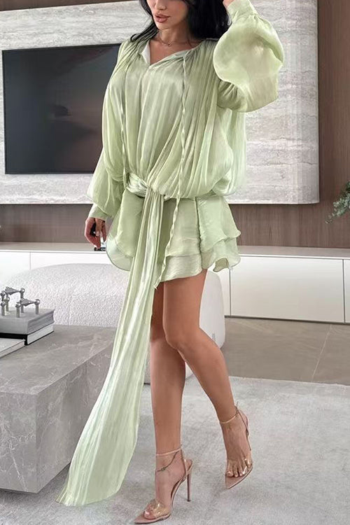 Meridress Off Shoulder Long Sleeves Knot Waist Draped Maxi Dress