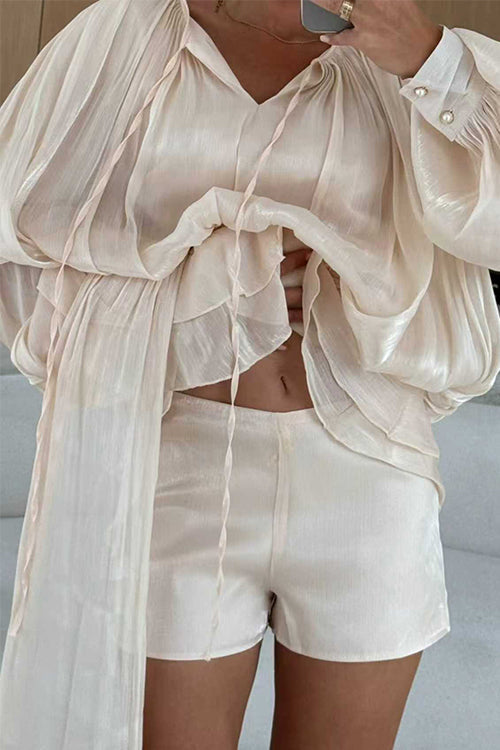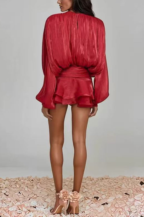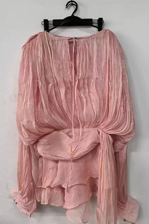 Meridress Crewneck Lace Ruffle Short Sleeves Top
