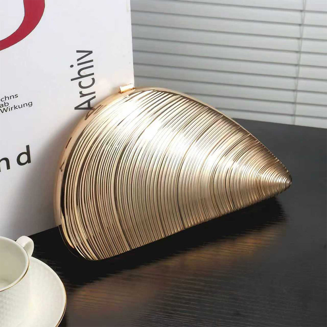 Meridress Trendy Chain Glitter Oyster Clutch Bag
