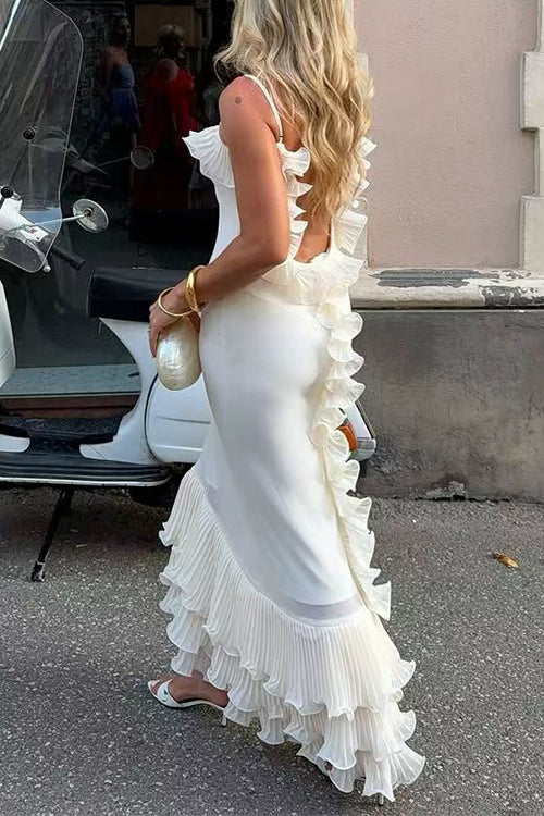Meridress Spaghetti Strap Open Back Ruffle Trim Maxi Dress