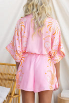 Short Sleeves Button Up Bow Waist Floral Print Romper