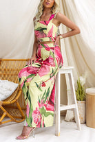 Sleeveless Crop Top and Wide Leg Pants Printed Set