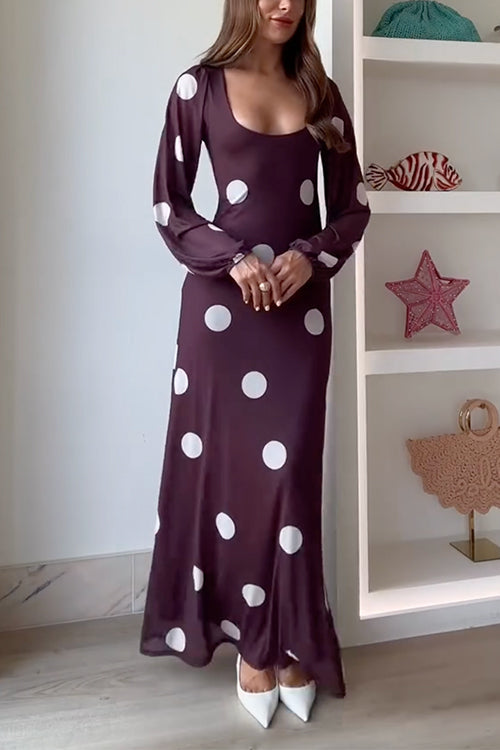 V Neck Long Sleeves Waisted Ruffle Trim Slit Maxi Dress