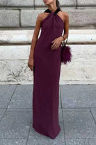 Captivate any room in this exquisite sleeveless maxi dress featuring an artfully draped back that commands attention. The graceful draping detail adds dimension and sophistication, while the floor-length silhouette exudes timeless elegance. Ideal for formal events, galas, and special occasions, this dress delivers both comfort and style. The sleeveless cut keeps you cool throughout the evening, and the flowing fabric moves beautifully with every step. Invest in a show-stopping piece that transforms you into the most elegant guest at any celebration.