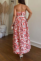 Make a splash with this stunning strapless tube maxi dress, featuring a captivating marine life print that brings ocean-inspired elegance to your wardrobe. The sleek strapless design offers a modern, sophisticated silhouette, while the flowing maxi length creates a graceful, flattering look for any occasion. Crafted from a comfortable cotton-polyester blend, this dress provides breathability and durability for all-day wear. Available in sizes S through XL with detailed sizing measurements to ensure the perfect fit.