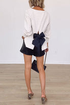 Discover the perfect blend of style and comfort with our Long Sleeves Bow Back Cut Out Top! Featuring long sleeves for warmth and a unique bow back cut out design, this top is sure to turn heads. Embrace your confidence and style with this must-have addition to your wardrobe.