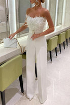 Meridress Off Shoulder Feather Splice Belted Jumpsuit