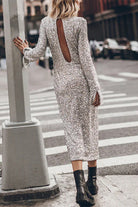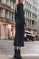 Meridress Long Sleeves Back Cut Out Sequin Midi Dress