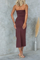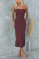 Strapless Tube Slit Ribbed Knit Midi Dress