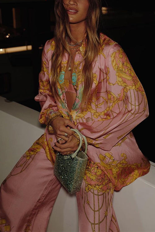 Stand out in style with our Meridress Unique Print Lantern Long Sleeves Blouse Shirt and Wide Leg Pants Holiday Outfit Set. The intricate print design and flowing silhouette make this outfit a must-have for any fashion-forward individual. Stay comfortable and chic for any holiday occasion with this one-of-a-kind set.
