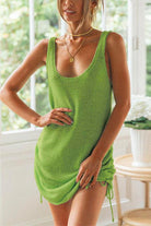 Meridresss Scoop Neck Side Drawstring Knit Cover Up Tank Dress
