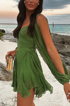 V Neck Back Lace-up Slit Sleeves Mini Dress