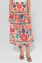 Discover the perfect blend of comfort and elegance with this high-rise floral print midi skirt. The elevated waistband flatters your silhouette while the flowing midi length provides graceful movement and timeless appeal. Featuring a captivating floral design, this skirt brings color and personality to your everyday rotation. Layer it with your favorite sweater for a cozy weekend look, or dress it up with a silk blouse for work or special events. Versatile, flattering, and undeniably chic¡ªthis is the skirt you'll reach for again and again.