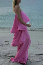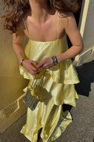 Meridress Adjustable Strap Ruffle Layered Satin Maxi Dress
