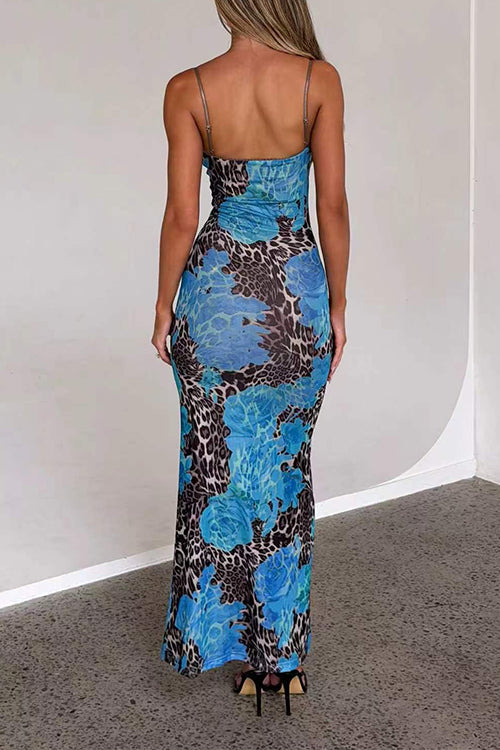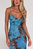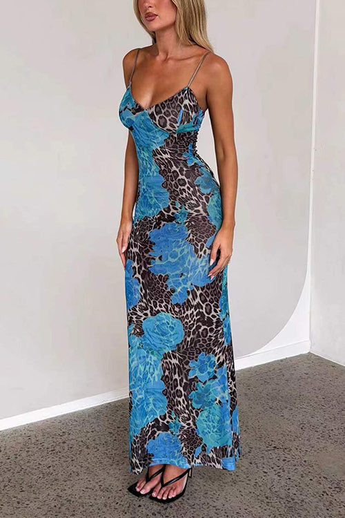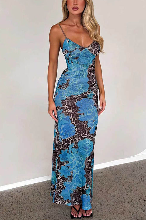 Meridress V Neck Color Block Leopard Print Maxi Cami Dress