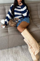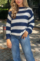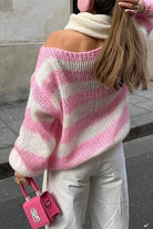 Meridress Drop Shoulder Striped Casual Pullover Sweater