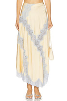 Meridress High Rise Color Block Lace Trim Satin Maxi Skirt