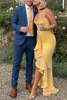 Meridress Spaghetti Strap Mesh Splice Draped Ruffle Maxi Dress