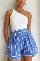 Meridress Striped Long Sleeves Curve Hem Shirt and High Rise Shorts Set