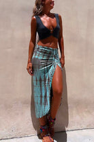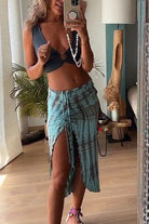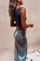 Drawstring High Slit Tie Dye Maxi Skirt