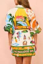 Introducing the Meridress, the perfect blend of style and comfort. With its elegant lantern sleeves and tie waist, this cotton linen dress is perfect for any resort occasion. The vibrant resort print adds a touch of fun and flair. Step out in confidence and style with the Meridress!