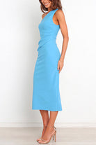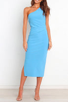 Meridress One Shoulder Sleeveless Side Split Ruched Midi Dress