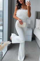 Meridress Strapless Feather Tube Top Flare Bottoms Jumpsuit
