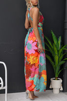 V Neck Sleeveless Tie Back Slit Floral Print Maxi Dress