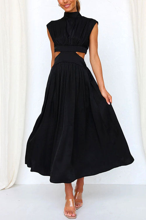 Meridress Mockneck Cut Out Waist Pockets Swing Dress