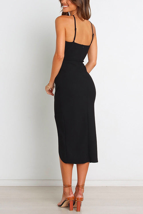 Meridress Adjustable Straps High Waist Slit Cami Midi Party Dress