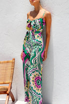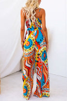 Spaghetti Strap Cut Out Wide Leg Printed Jumpsuit