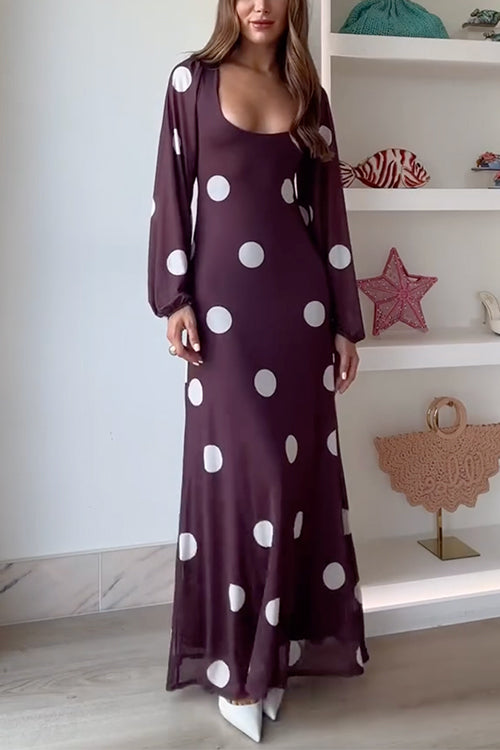 V Neck Long Sleeves Waisted Ruffle Trim Slit Maxi Dress