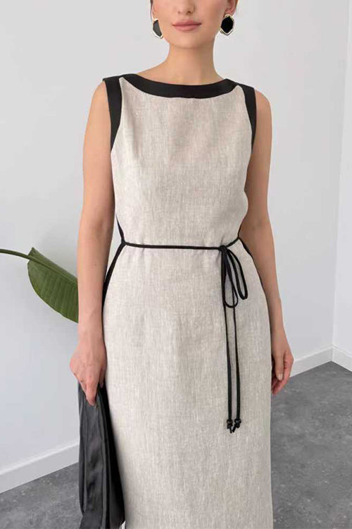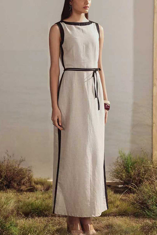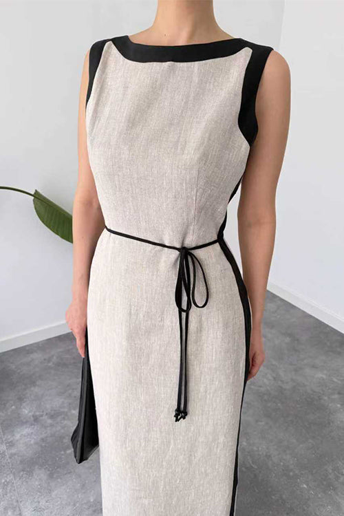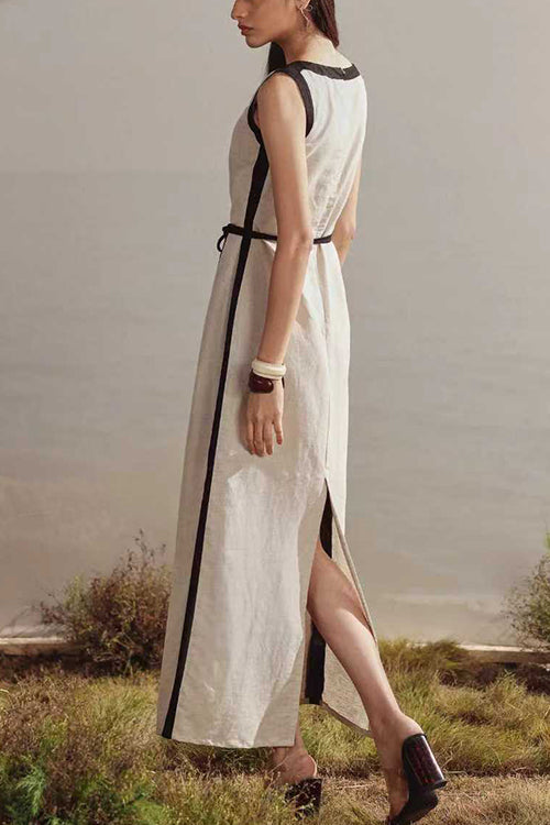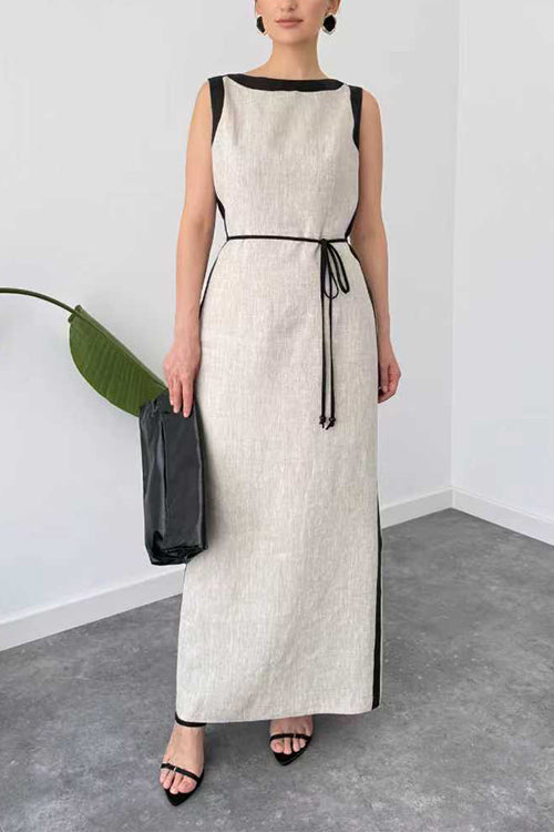 Boat Neck Sleeveless Back Slit Maxi Dress