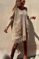 Coziest Dolman Sleeves Pocketed Tassel Sweater
