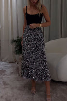 Sparkle and shine in our Glam High Rise Sequin Midi Skirt! This stunning piece features a high rise fit and intricate sequin detailing that adds a touch of glamour to any outfit. Stand out from the crowd and make a statement with this eye-catching skirt. Perfect for any special occasion, it's sure to turn heads and make you feel confident and stylish.