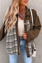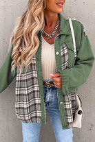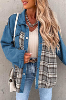Meridress Button Down Long Sleeve Splice Plaid Jacket