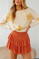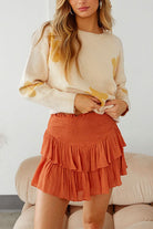 Meridress Casual Elastic Waist Ruffle Swing Skirts