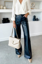 Elevate your style with our Meridress Pocketed Straight Wide Leg Faux Leather Pants. With a chic straight leg and functional pockets, these pants offer both fashion and practicality. The faux leather material adds edginess to any outfit. Command attention and exude confidence in these must-have pants.