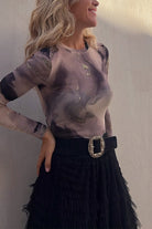 Meridress Ruffle Layered Mesh A-line Maxi Skirt