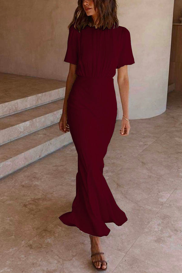 Meridress Short Sleeve Waisted Bodycon Fishtail Dress(6 Colors Available)