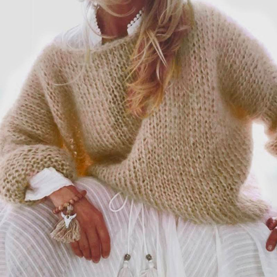 Meridress Solid Boat Neck Fluffy Knitting Sweater