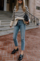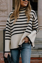 Meridress Striped Tuetleneck Side Split Pullover Sweater