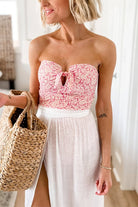 Make a splash in this stylish Tie Knot Front Strapless Printed One-piece Swimsuit! Featuring a flattering tie knot front and a vibrant printed design, this swimsuit will have you feeling confident and chic at the beach or pool. Embrace your inner fashionista with this must-have swimwear.