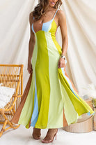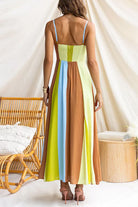 Adjustable Strap Striped Color Block Pocketed Maxi Dress