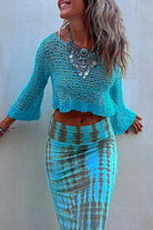 Meridress Crewneck Hollow Out Crop Top Sweater