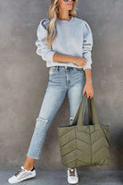 Meridress Crewneck Puff Sleeves Comfy Sweatshirt