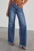 Meridress Raw Hem Distressed Wide Leg Denim Pants