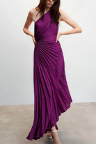 Meridress Sleeveless One Shoulder Cut Out Maxi Pleated Party Dress