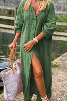 3/4 Sleeves Button Down Cotton Linen Oversized Maxi Shirt Dress