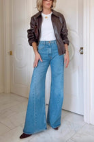 • Step up your fashion game with the Meridress Lapel Zip Up Faux Leather Bomber Jacket. Featuring a sleek faux leather finish and a stylish lapel collar, this jacket brings a fresh, edgy vibe to any outfit. The secure zipper closure provides both comfort and a sharp, fitted silhouette, making it ideal for casual outings or nights out. Combine warmth and contemporary style effortlessly with this essential wardrobe piece.